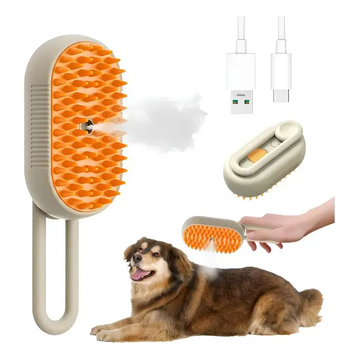 El Cepillo a Vapor 3 en 1 elimina enredos, limpia en profundidad y masajea, logrando un pelaje más sano y brillante sin esfuerzo.